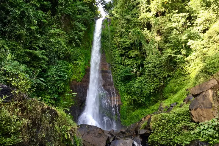Gitgit Waterfall, located in the Buleleng Regency, is renowned for its stunning twin falls and accessibility. The best time to visit is in the morning, offering optimal lighting for photography and a more peaceful experience.