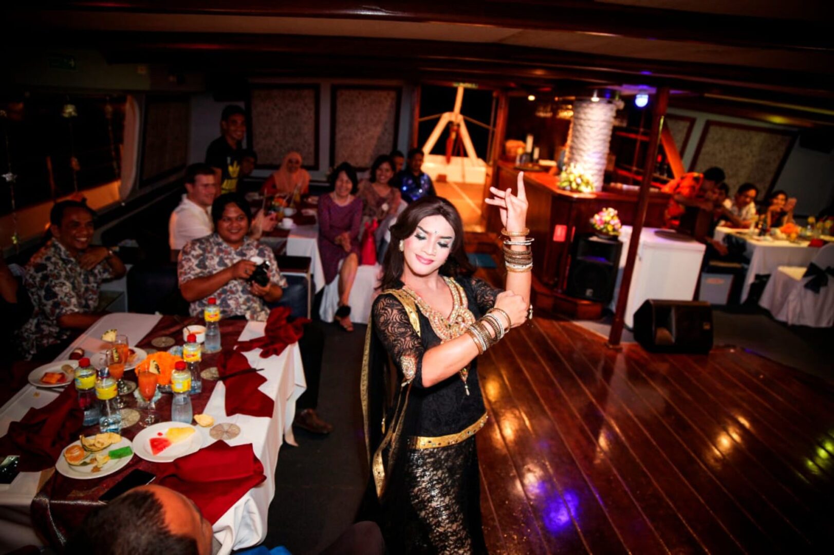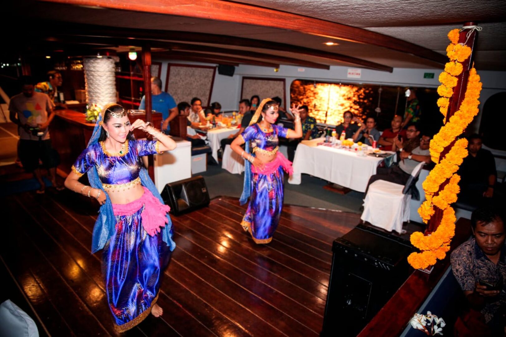 Experience a perfect tropical evening on Bali Hai’s Evening Dinner Cruise, departing Benoa Harbour at 5.45PM. Enjoy a 3-hour sunset cruise with a warm welcome, including drinks and canapés. Enjoy the stunning sunset while listening to live music and indulge in a delectable buffet dinner featuring salads, meats, fish, and desserts. Be entertained by live performances, a captivating cabaret show, and vibrant dance acts.