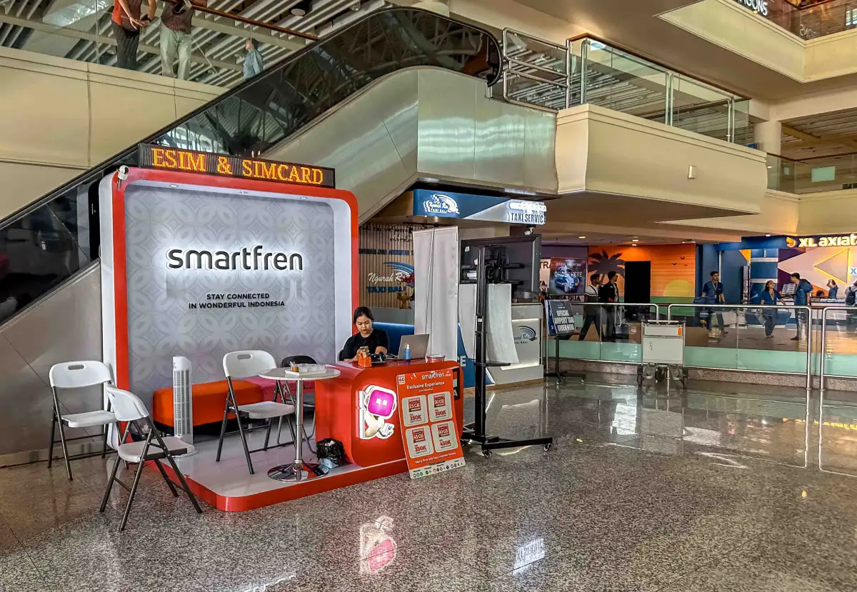 Denpasar Airport is the fastest and most convenient place to buy a SIM card in Bali. Various kiosks, including those from Telkomsel, XL Axiata, and Indosat Ooredoo, are located within the Bali airport. For example, the Telkomsel kiosk is positioned next to luggage belt 4 in the baggage claim area, while XL Axiata and Telkomsel stores are in the arrivals hall of the International terminal.